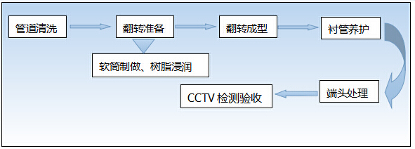 原理:通過特殊加壓設備將浸漬了特殊粘合劑的內(nèi)襯軟管翻入待修復管道,翻轉(zhuǎn)時浸漬有粘合劑的內(nèi)層翻轉(zhuǎn)到外面與原管道內(nèi)壁緊貼,經(jīng)過固化最終形成具有防腐防滲功能的內(nèi)襯層,最終達到修復管道的目的。